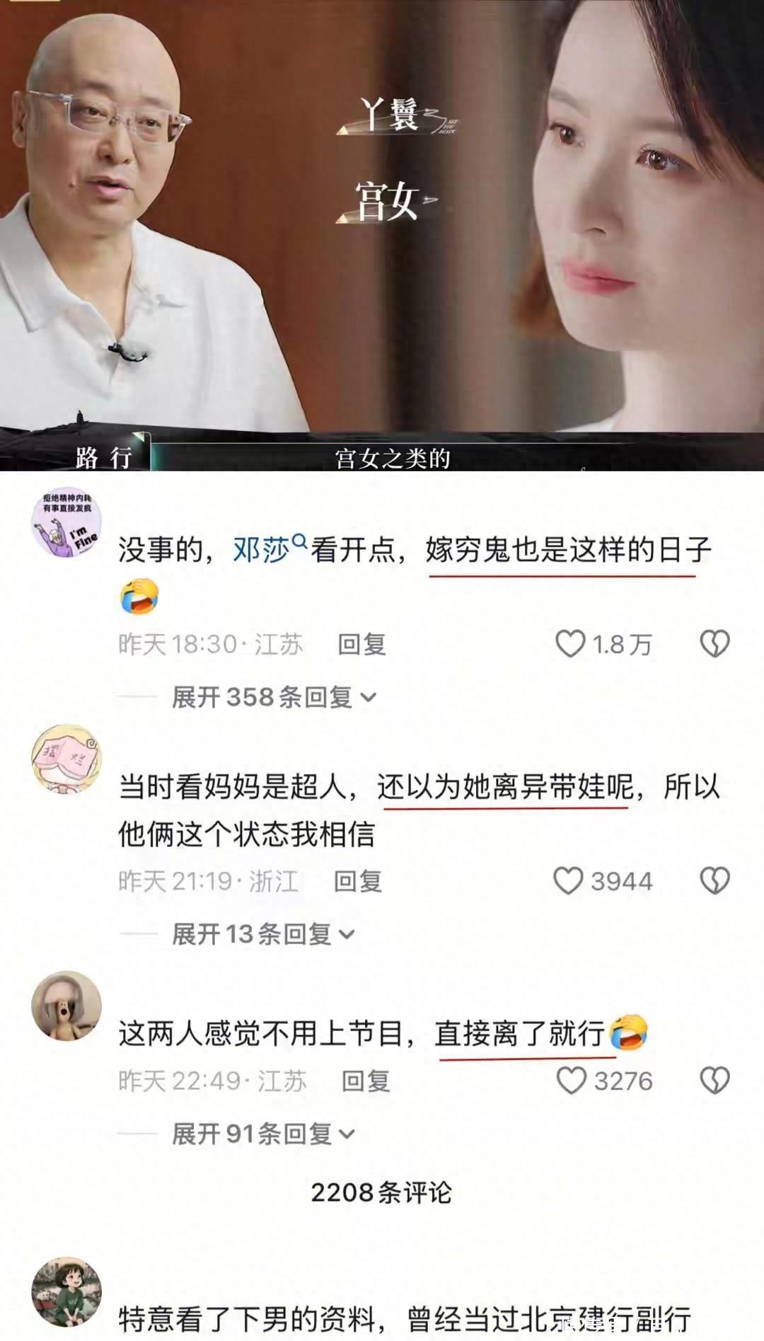 近日,58岁的上市公司负责人路行与40岁女演员邓莎的婚姻引发热议,这位商界富豪与曾塑造诸多经典角色的女星之间18岁的年龄差,本是私人情感的选择,却因公开场合中男方流露的上位者轻蔑姿态,沦为公众讨论阶层婚姻的样本 。当镜头捕捉到路行在受访时打断妻子发言、眼神中带着显而易见的敷衍与轻视时,一句“嫁穷鬼也是这样”的网友评论,意外戳破了当代婚恋关系中被回避的本质命题。